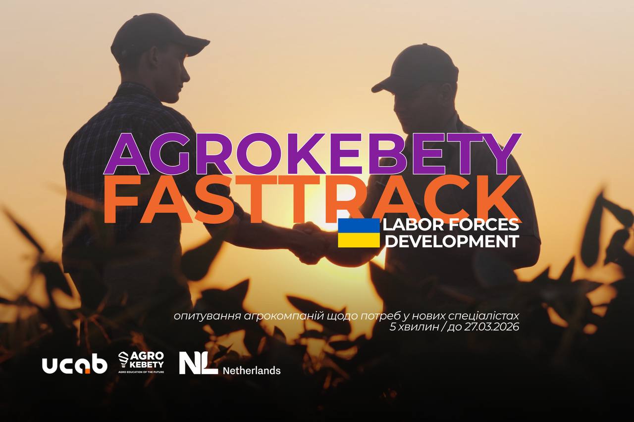 УКАБ спільно з освітнім проєктом «Агрокебети» за підтримки уряду Королівства Нідерландів запускають короткострокову програму підготовки технічних спеціалістів для аграрного сектору — Fast Track.